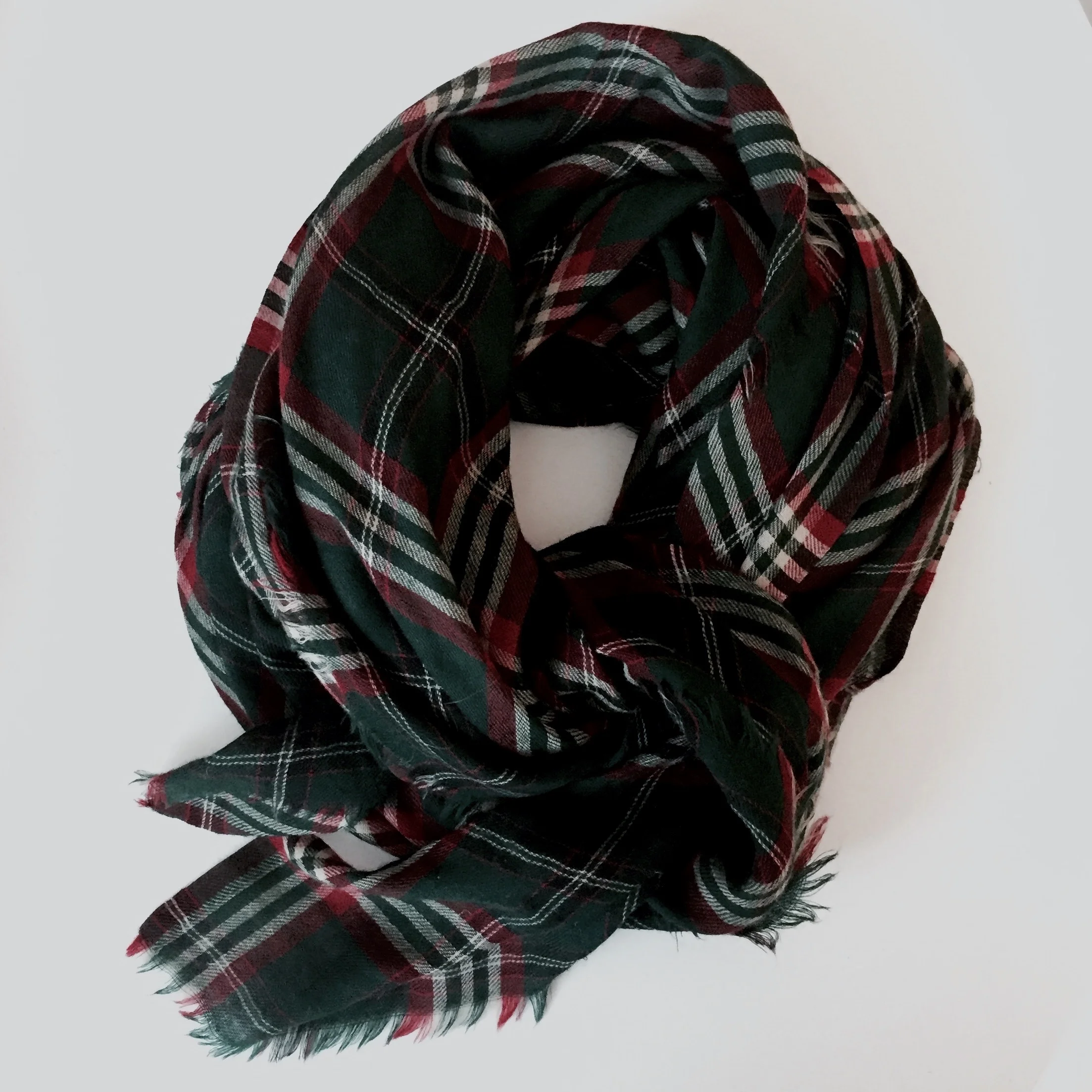 In my books a girl can never have too many scarves or plaid so this thing called my name from the racks at Monoprix, my not-so-secret Paris shopping source. Monoprix is a bit like the Marks & Spencer of France. Prices are very affordable (because even in Paris I'd rather spend my money on wine and cheese and croissants). There's a mix of older lady things and fashion forward pieces. I always find a few good items. In fact, I still wear a couple of great pieces I bought there back in 2008 that still feel quite Parisian chic 8 years later. This scarf is a square with a bit of self fringe so it offers lots of styling possibilities — I'll spare you the "40 ways to style a scarf" Youtube tutorial. The scarf is made of very fine wool so it's not too bulky around my neck (short-neck girl probs) and is warm but not too hot. It will be an easy way for me to introduce some green into my classic all-black-everything getups. It'll also be a three-season standby for this Canadian.