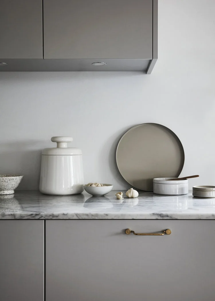 I'm working on a kitchen colour trends assignment for one of my clients and this kitchen is ticking all the boxes for what I've been cooking up in my head. I may or may not have also been inspired by my Mom's outfit in this post. Dove grey all day. My assignment is to pull together a mood board of a kitchen design, but my goodness I'd so love to make a kitchen like this happen for someone for in real life. Anyone? Anyone?