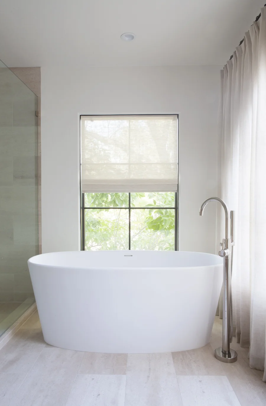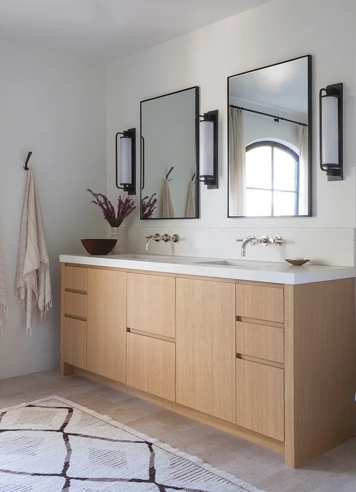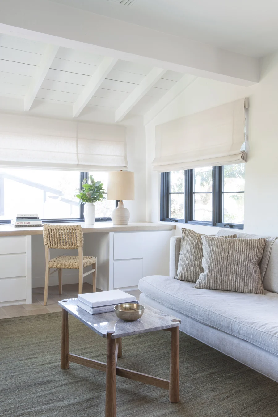 If this looks familiar, you may be recalling that I included this dreamy bath in my post on Top 10 Bathrooms for 2017. It's nice to see it here again in the context of the house it belongs to. This room makes me feel vindicated in my recent choice of plain oatmeal linen for a Roman blind and off-white unlined linen for drapes in two recent client projects (after reviewing a gajillion print fabrics). My inner voice kept saying "keep it simple". My stylist heart really wants to see some very interesting basket or tribal stool here. Or a tall vase with just some leafy branches in the back corner. But I'll get over that.